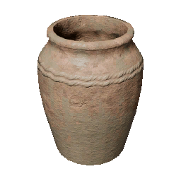 "A ceramic container carefully crafted by an artisan. It's a jar used for storing grains and similar goods, ideal for keeping large quantities for extended periods."