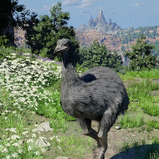 Elephant Bird is a Story NPC in Crimson Desert. A colossal bird that roams the land with ease. Its body is immensely thick and imposing. Equipped with a stout, robust beak, it is well suited for breaking apart tough plant stems and fruits. Though its stride is slow, its powerful legs carry it forward with heavy and relaxed steps.