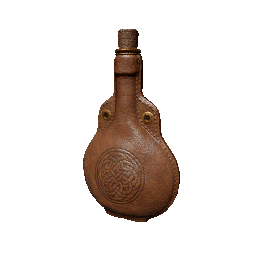 "A container crafted from leather meticulously tanned by an artisan. Lightweight and easy to carry, it serves as an ideal water bottle for long journeys."
