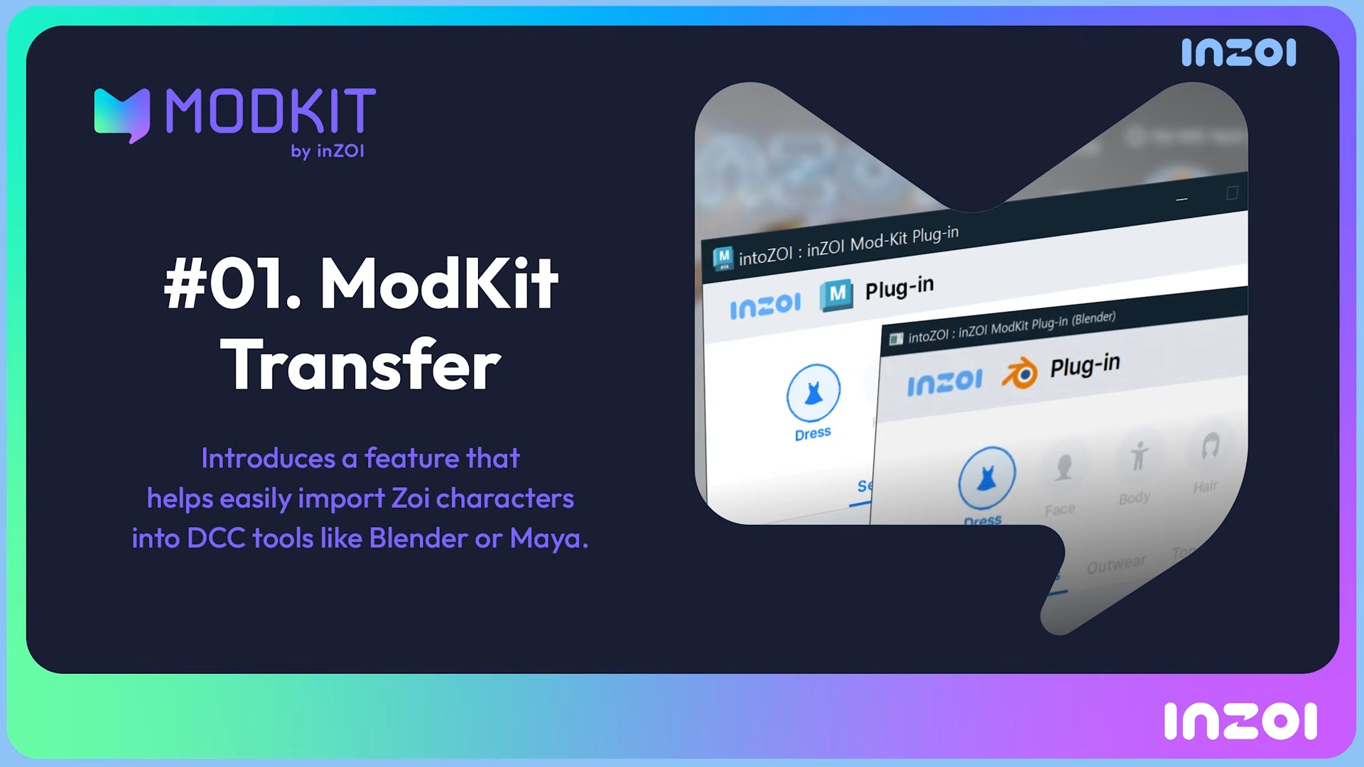 Blender Plugin | Official plugin for importing inZOI meshes into Blender. Export FBX files back into the mod format. |