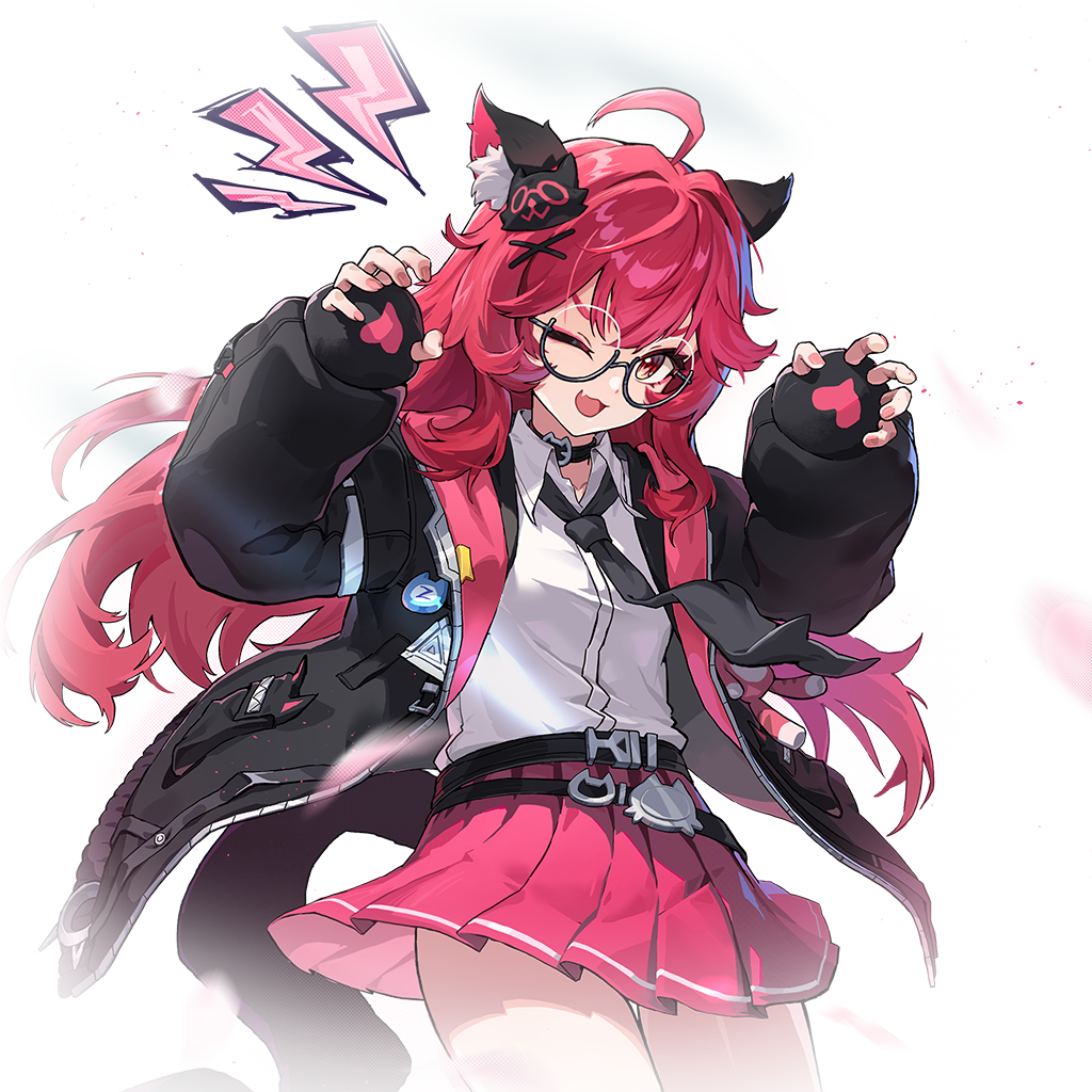 Nanally has a striking cat-girl appearance complete with cat ears and sharp teeth. She channels electricity through her body, and her combat stance reflects her street-fighting background. Her design combines a playful, feline aesthetic with an aggressive combat presence.