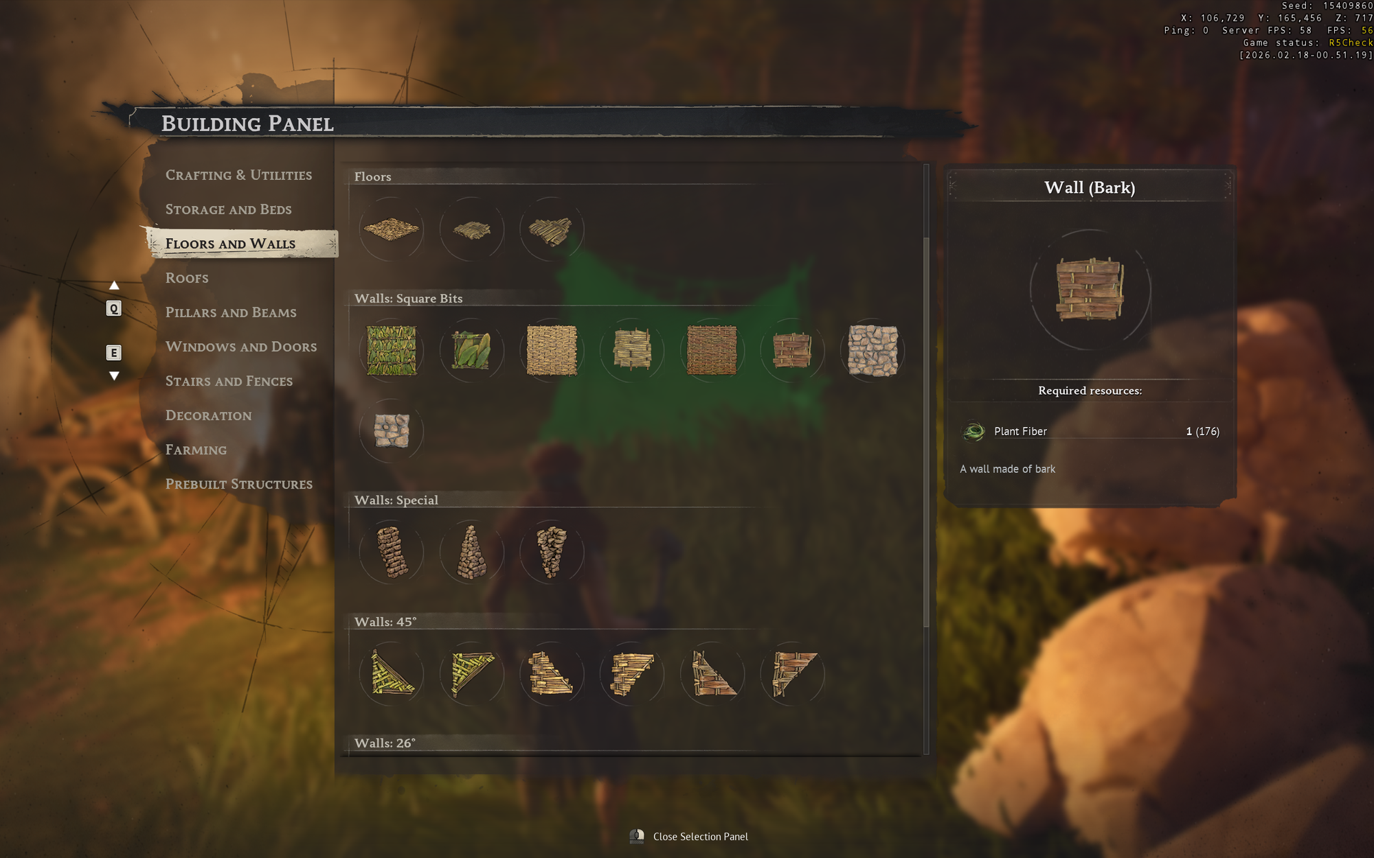 Floors and Walls | 98 | Leaf walls, bark walls, plank walls, stone walls, window cutouts |