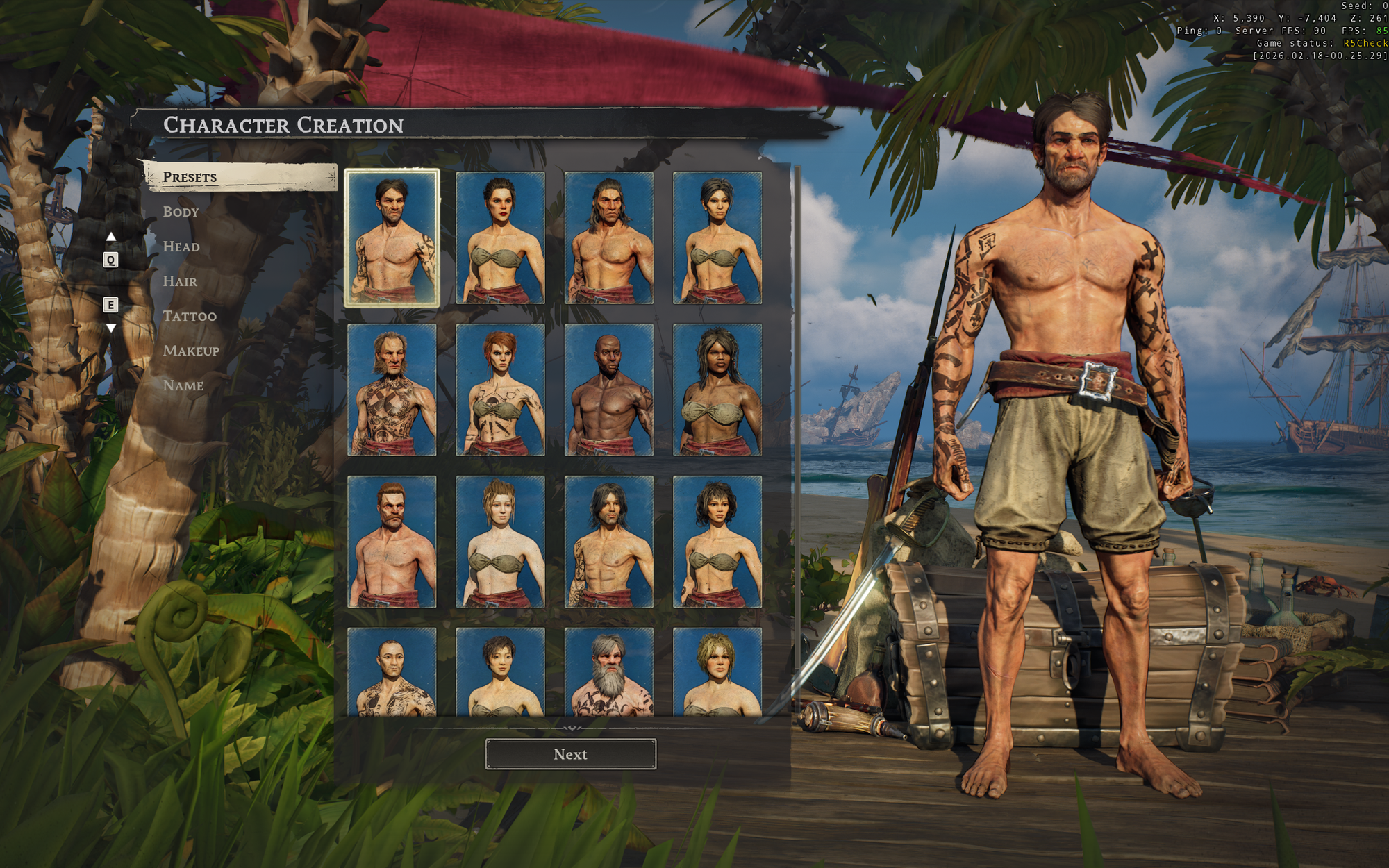 In multiplayer sessions with up to four players, character creation provides visual distinction between crew members. Each player controls their own customized character, and appearance differences help identify who is who during ship boarding and group combat.