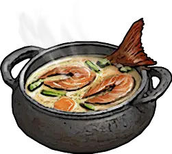 Chowder is a rare-tier cooked dish in Windrose. A rich fish soup where you can toss in not just the fish, but whatever else came up with it.